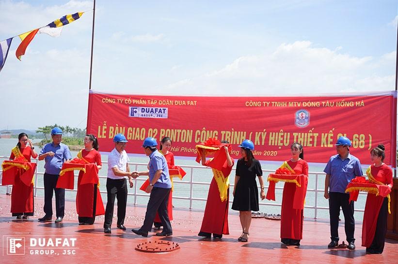 Sáng ngày 17/7, buổi lễ bàn giao chính thức được diễn ra tại nhà máy đóng tàu Hồng Hà thuộc Lê Thiện, An Dương, Hải Phòng với sự góp mặt của đại diện cả hai phía tập đoàn DUAFAT cũng như Công ty TNHH MTV Đóng tàu Hồng Hà. Buổi lễ diễn đã diễn ra trong sự cởi mở và thân tình, đúng với tinh thần hợp tác của hai bên.