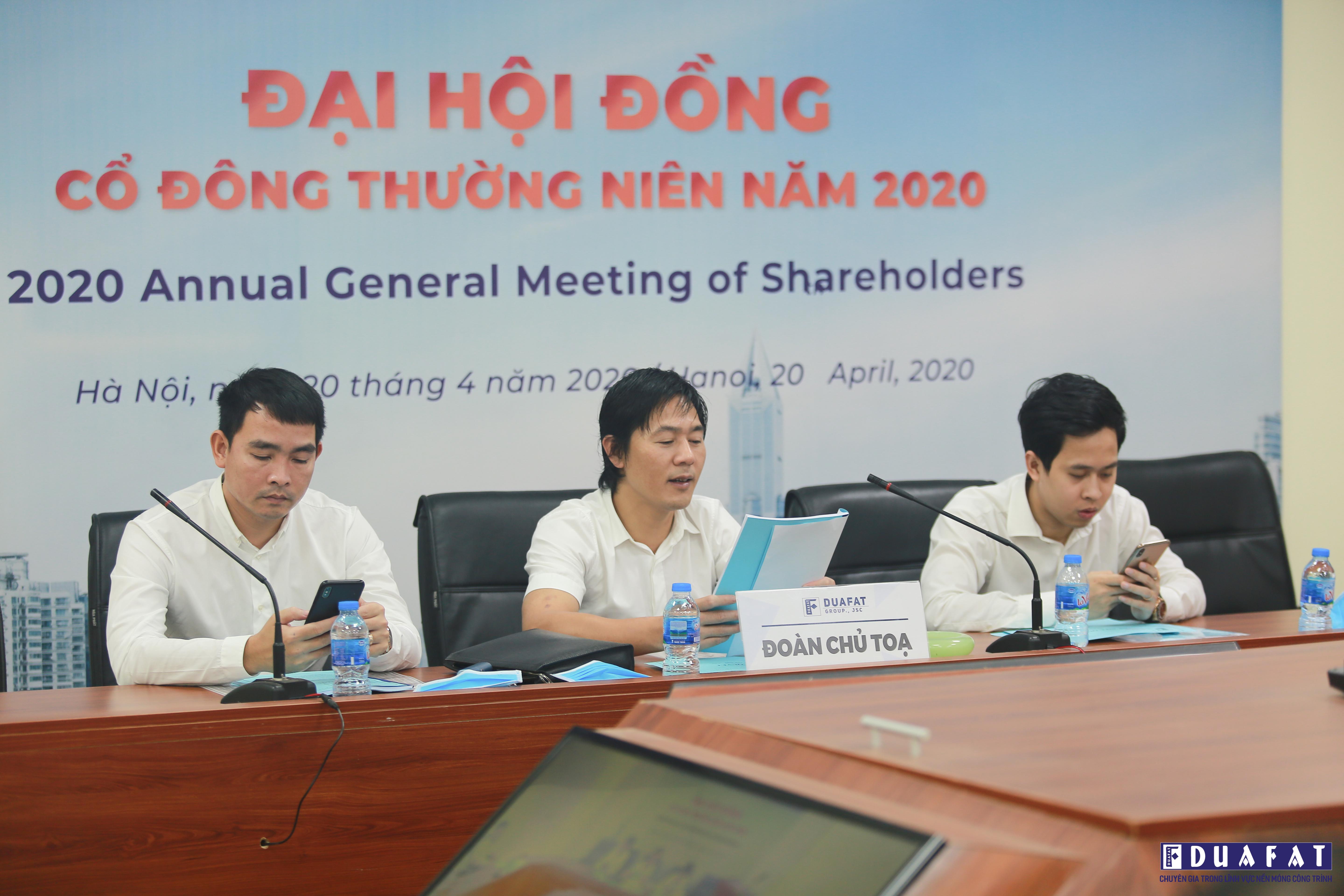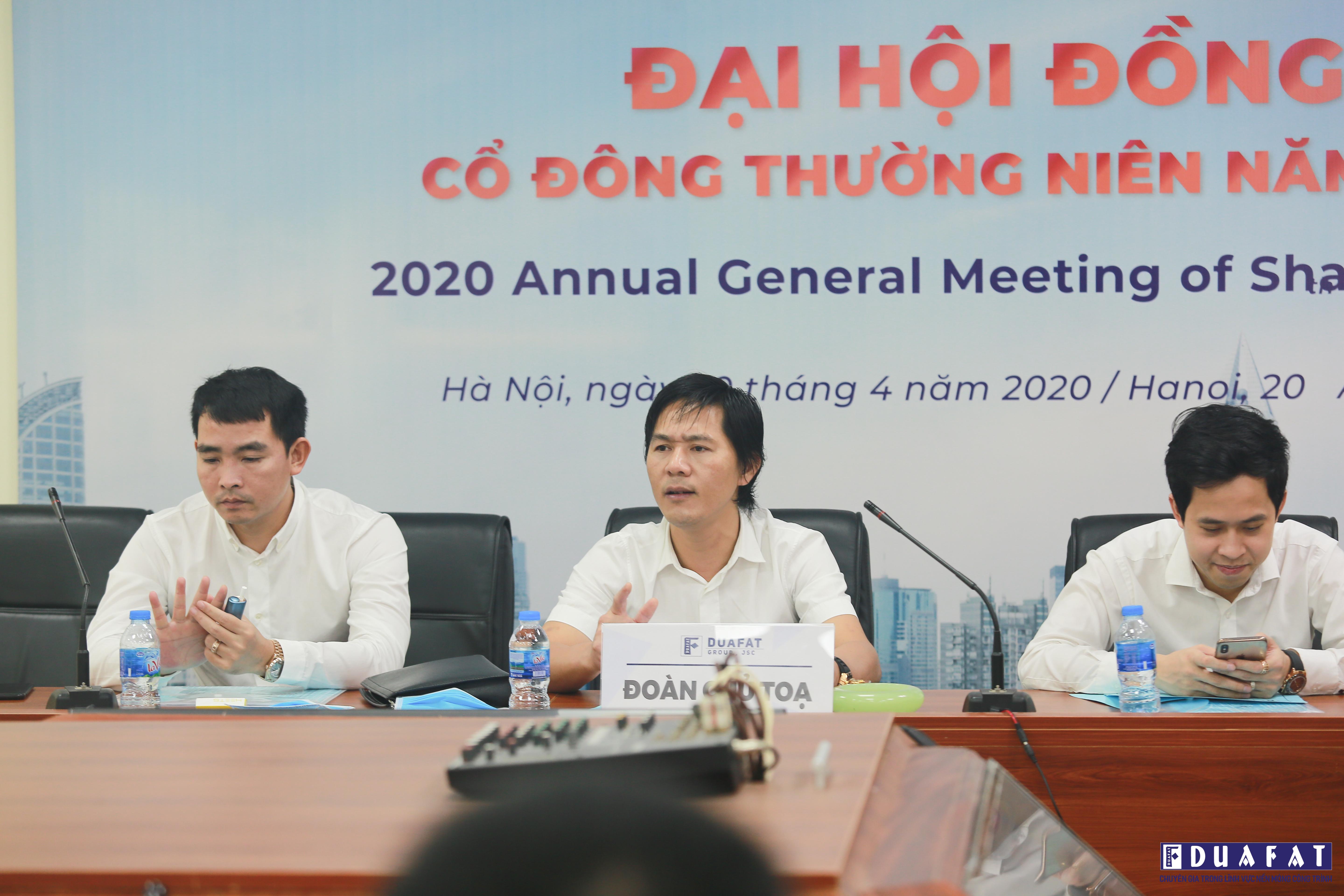 On the morning of April 20, 2020, DuaFat Group Joint Stock Company held the Annual General Meeting of Shareholders in 2020 on the 3rd floor, No. 15, Adjacent 10, Xa La urban area, Phuc La ward, Ha Dong district, Hanoi